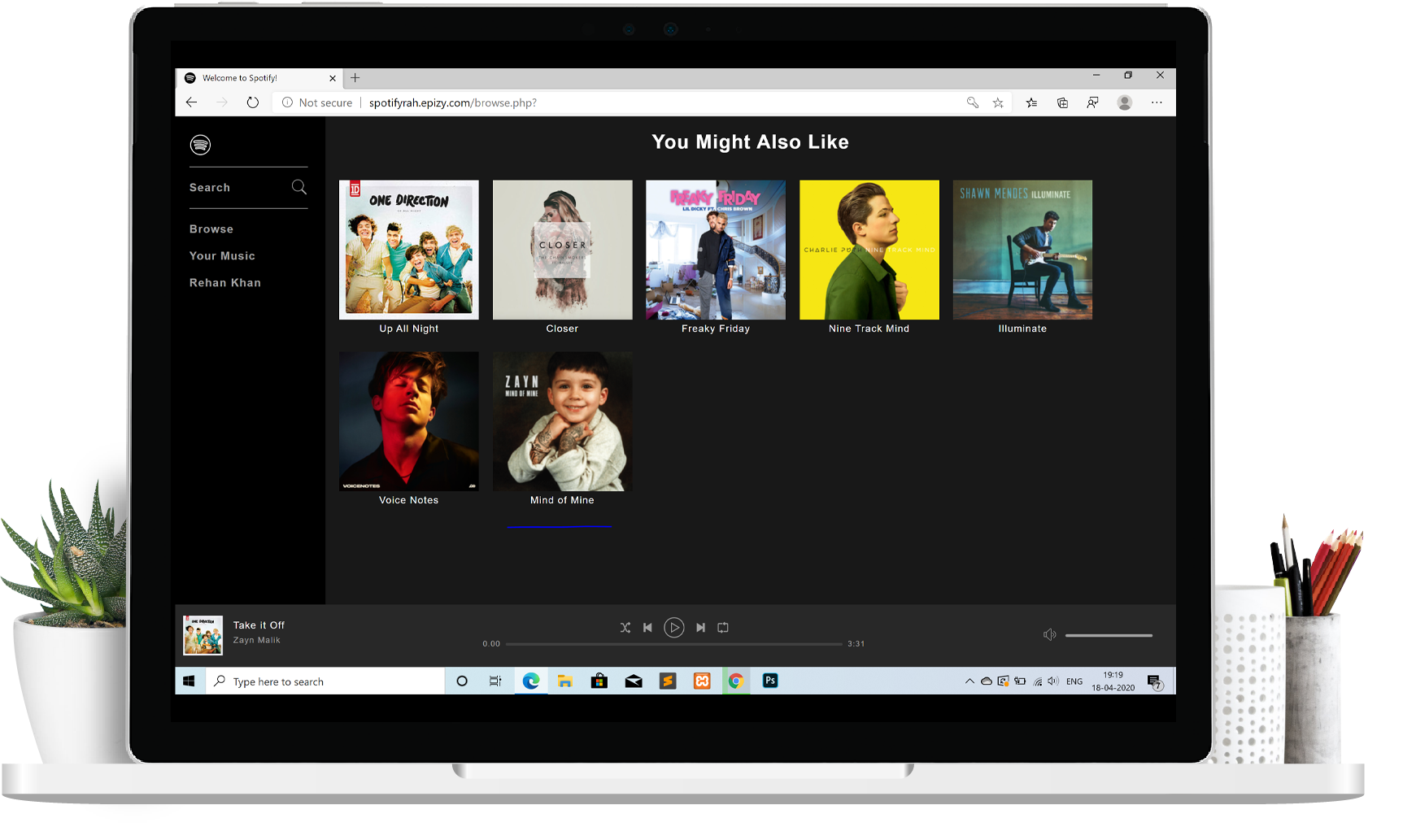 A simple music web application very similar to spotify, here you can search for a music, shuffle play, create your own playlist, manage user details.